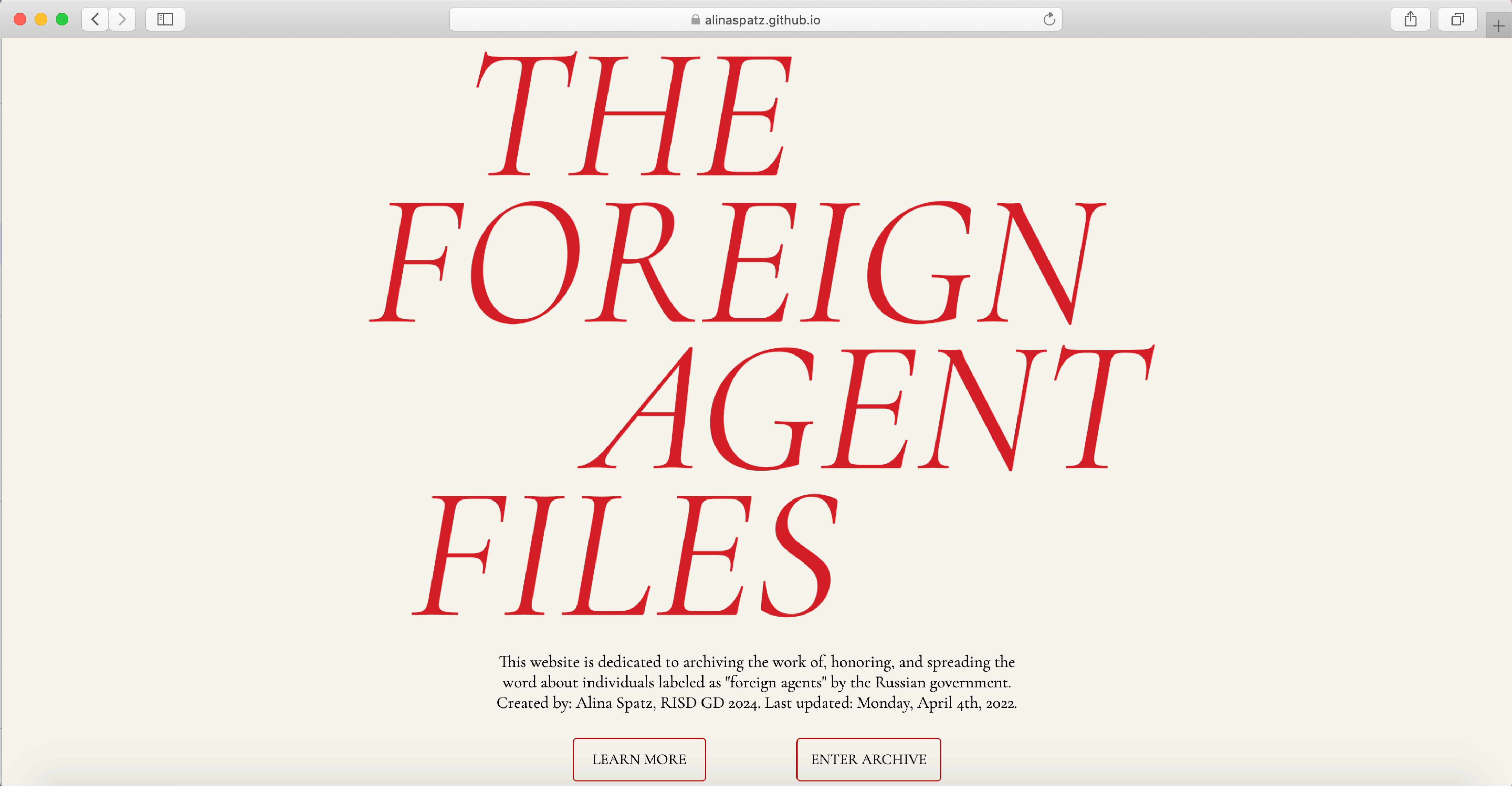 Interactive and informative website dedicated to archiving the work of, honoring, and spreading the word about individuals labeled as "foreign agents" by the Russian government.